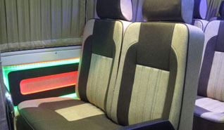 Our Babus auto designing reclining seats tempo traveller is the pioneer way in introducing Motion Furniture in and around Coimbatore. As a company, we heralded an era of comfort seating alignment and were instrumental,as we are very creative in bringing affordable luxury reclining comfortable seats among the to homes in Coimbatore.